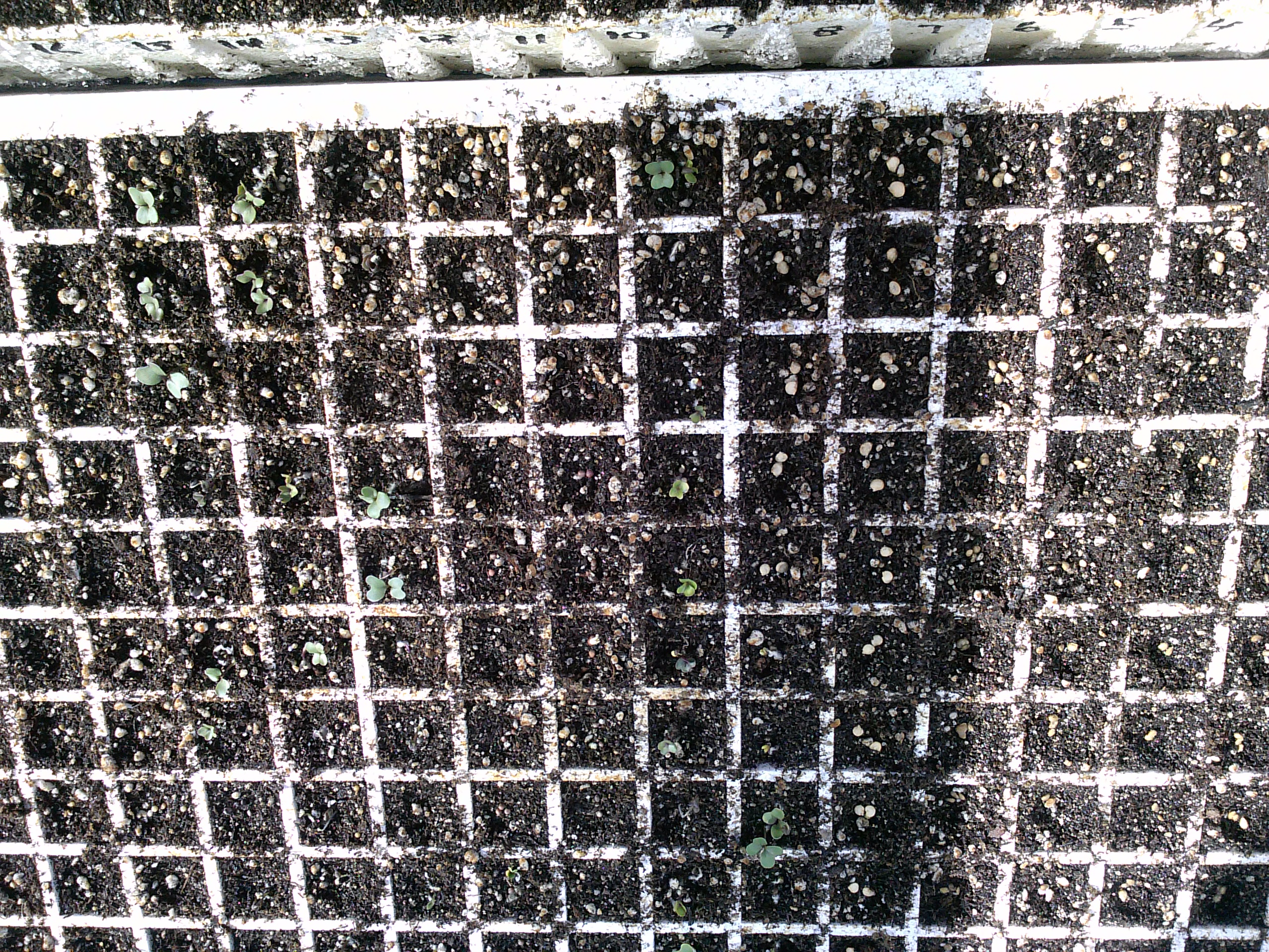 We are using the trays that float on water, and in this small greenhouse we have nearly 1,000 seeds starting! Yes, this is for any Homesteader a very Frugal way to start your garden seeds and raise your own plants. We do have some seedlings that have started to come up.